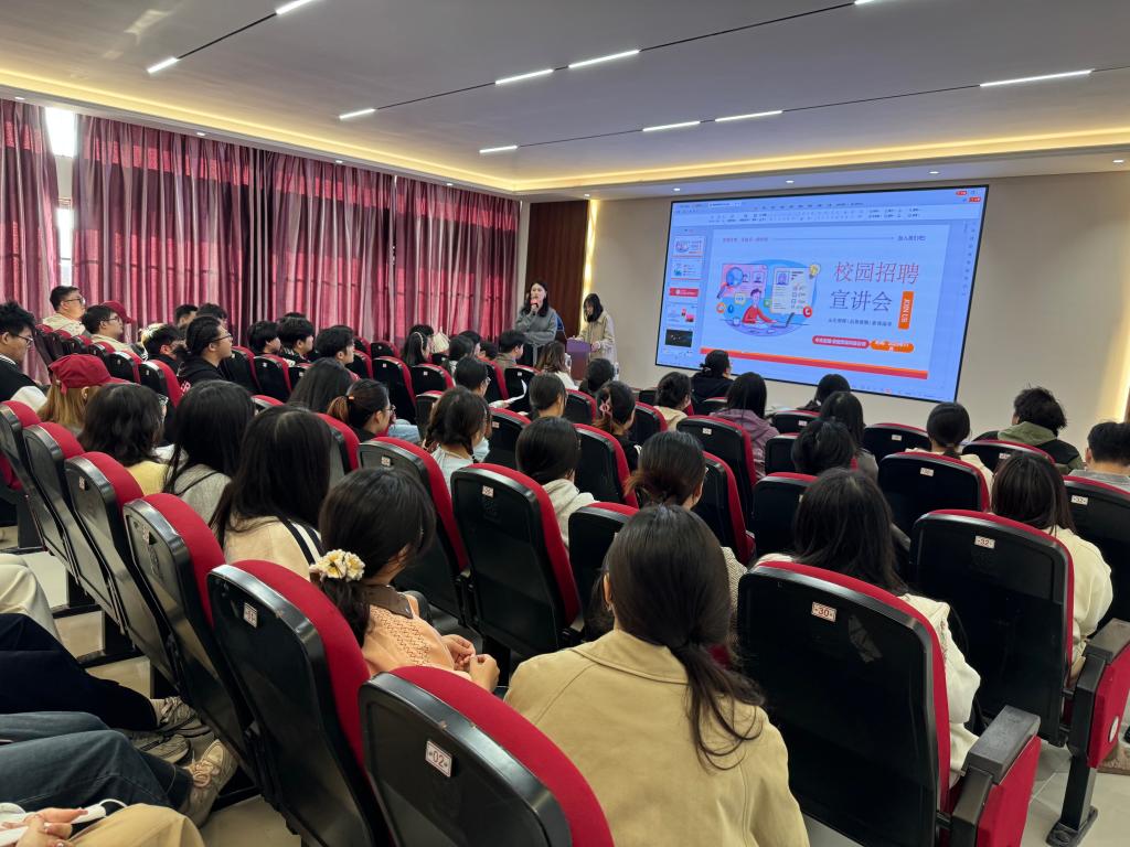 为深化产教融合,搭建优质人才供需桥梁,精准对接数字文化产业发展需求,11月5日下午,安徽野象科技有限公司专场招聘宣讲会在亚洲av A329报告厅举办。公司核心团队与亚洲av 动画、网络与新媒体等相关专业100余名师生进行交流,现场氛围热烈浓厚。