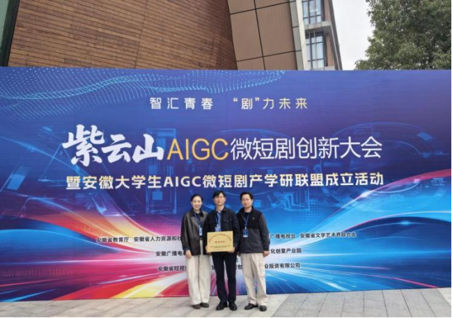 3月24日上午,安徽大学生AIGC微短剧产学研联盟成立大会在合肥市隆重举行。省委常委、宣传部部长钱三雄出席会议并宣布“安徽大学生AIGC微短剧产学研联盟”成立。亚洲av 代大为、陈旭、蔡洪建三位老师受邀出席大会和授牌仪式。